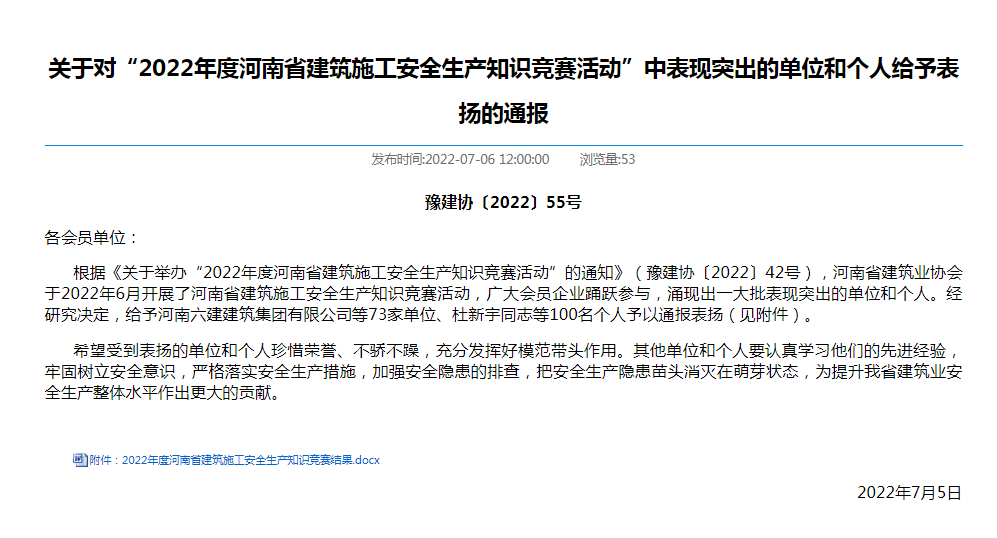 【查看詳情】安全生產(chǎn)是一個(gè)企業(yè)的生命線,也是一個(gè)永恒的話題。多年來,河南五建第二建筑安裝有限公司始終堅(jiān)持安全第一、預(yù)防為主、綜合治理的安全方